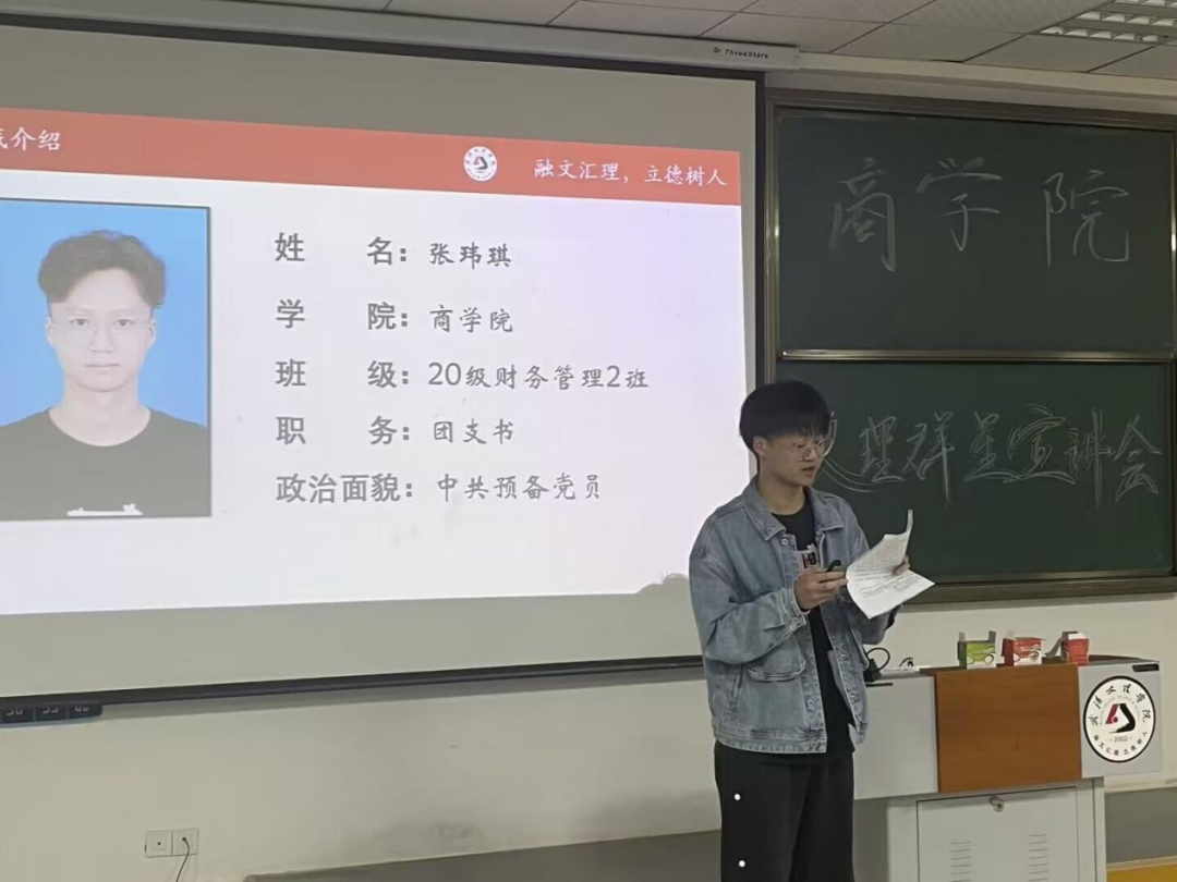 3月28日18:30—20:00,伟德bv国际体育2023年文理群星宣讲会伟德bv国际体育2022级本科专场在4-121举办。伟德bv国际体育2022级辅导员张萌老师和2022级财务管理、电子商务、物流管理、国际经济与贸易、金融学、投资学专业员工共计200人参加。伟德bv国际体育员工覃圆梦(2021级大数据与会计2班)、肖若莹(2020级市场营销班)、刘星颖(2020级财务管理)、王铭扬(2020级财务管理2班)、张玮琪(2020级财务管理2班)担任宣讲人。
