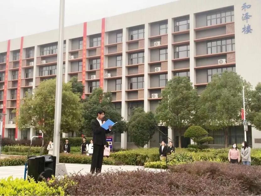 伟德bv国际体育2021级财务管理1班吴立峰和外国语公司2022级外语3班刘文洁在庄严的升旗仪式后发表了国旗下的讲话。