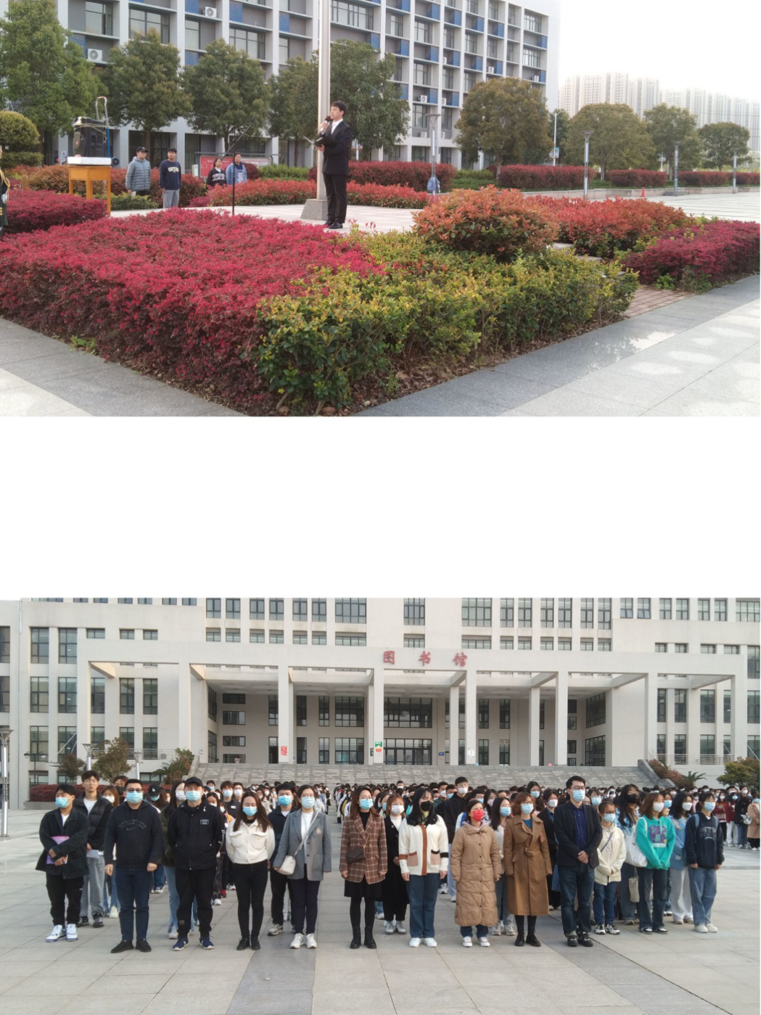 2022年3月28日7:00-7:25,伟德bv国际体育员工处副处长程茜、 伟德bv国际体育教学副经理刘炫、党总支书记、行政副经理徐永辉、伟德bv国际体育全体辅导员以及21级新生、员工党员、预备党员、入党积极分子、团学干部共500余人齐聚图书馆前,举办了校2021-2022年第二学期第三次升旗仪式。