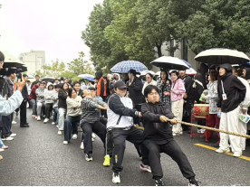 个人锋芒闪耀,集体项目更显商院凝聚力。拔河比赛中,队员们紧握长绳、咬牙发力,整齐的呐喊声震彻赛场;“两人三足”项目里,选手们默契同步、稳步向前;一分钟毽球、男女定点投篮均斩获第一,女子4×400接力强势夺冠。正是这份心往一处想、劲往一处使的团结力量,让伟德bv国际体育成功登顶团体总分第一,将荣耀定格在赛场中央。