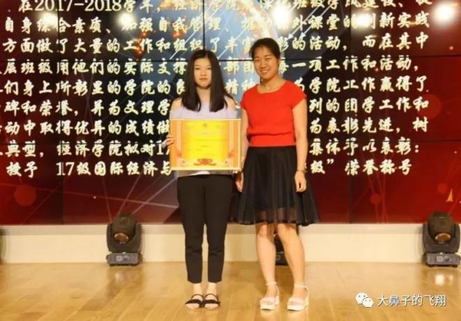 2018年,胡铝代表班级领取“优秀班级”奖项