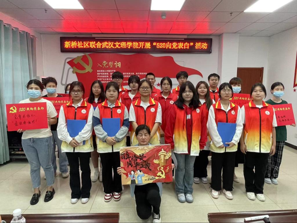 百年峥嵘岁月,百年风雨兼程,中国共产党不忘初心,砥砺前行,为中华民族的伟大复兴不懈奋斗。百年来,人民铭记党的光辉历史,歌颂党的丰功伟绩,学习党的优秀品质。在“520”即将到来之际,5月17日下午三点,伟德bv国际体育、外国语公司联合新桥社区开展“520向党表白活动”。