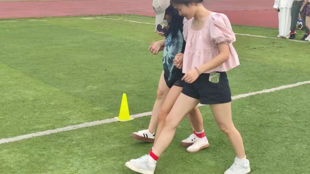 三人两足:本项比赛各队参赛者在用绳子将队内成员两两捆好后,由裁判宣布游戏开始。此项活动需要大家密切合作、协调步伐和共同努力,这不仅锻炼了身体素质,还提高了心理素质和团队合作能力。