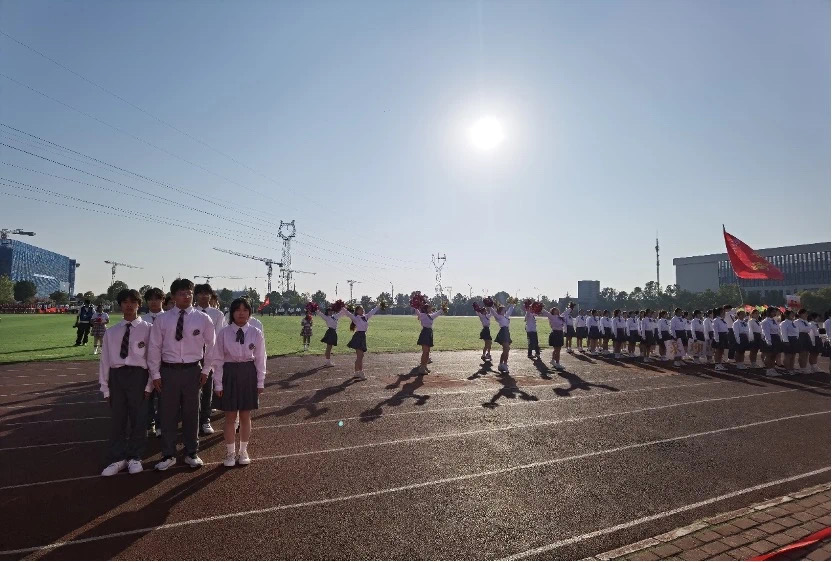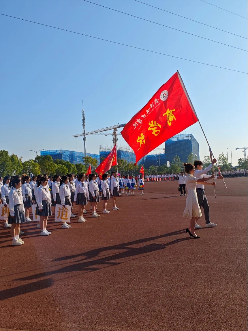 阳光明媚地洒落在操场之上,五彩斑斓的旗帜在微风中翩翩起舞,营造出一片热烈而欢腾的氛围。