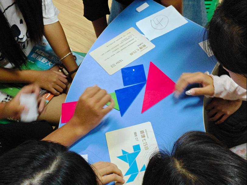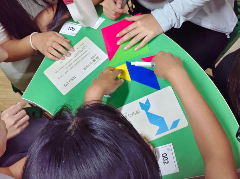 在袁老师的引导下,同学们通过抽签的方式被分成七个小组,每组分到一套七巧板和不同的任务卡。任务颇具挑战性,不仅需要在45分钟内获得尽可能高的分数,而且没有任何一个任务能够仅凭一套七巧板独立完成。更为特别的是,除了中央的协调组外,其他六个小组如同孤岛般彼此隔离,无法直接沟通交流,必须依赖协调组的帮助才能完成任务。