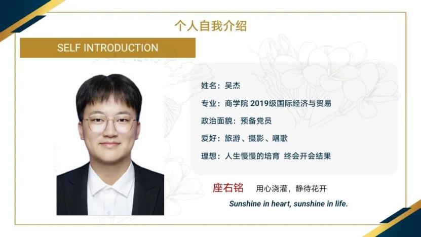 吴 杰,男,伟德bv国际体育2023届、2019级国际经济与贸易专业员工,预备党员。