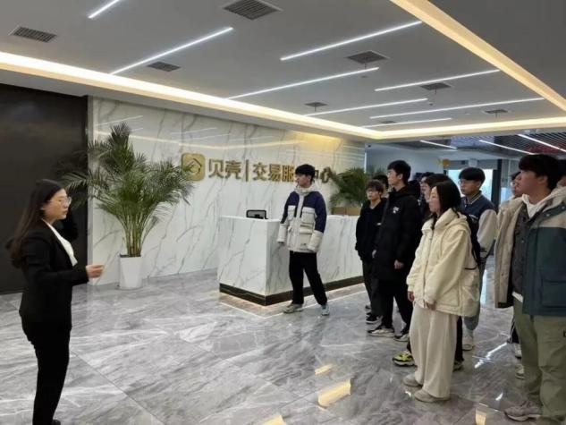 15:00,师生在宋玉娥、邓瑶、卫晓飞等工作人员的带领下首先进行了总部参观活动。同学们分为两组陆续参观了武汉贝壳公司的银行驻点、交易服务中心、员工区、家居区等办公场所。通过参观,员工们感受到了武汉贝壳公司的舒适和良好的工作环境与氛围。