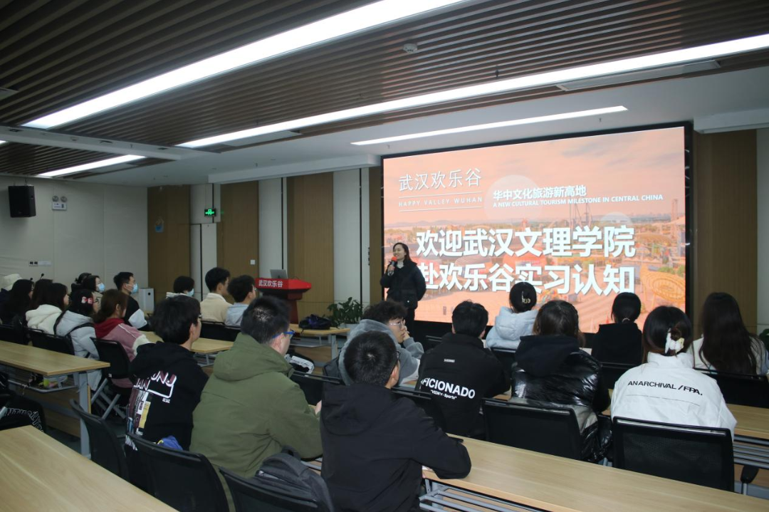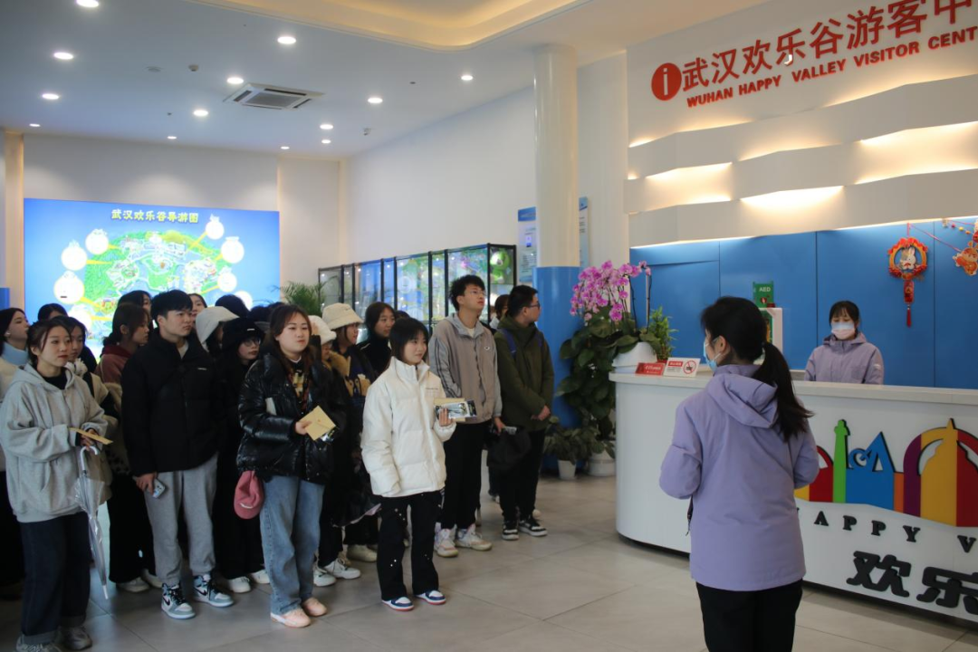 2023年2月22日14:00-17:00,伟德bv国际体育工商管理系旅游管理教研室主任丁浩、工商管理系旅游管理专业教师阮啸、伟德bv国际体育财务管理教师、公司教学督导刘肇宇和辅导员、公司新媒体中心负责人张萌带2021级市场营销、旅游管理专业班25名员工包车到武汉欢乐谷进行认知实习活动。武汉欢乐谷招聘培训室经理吴茜、招聘主管熊娜负责接待了伟德bv国际体育师生一行。